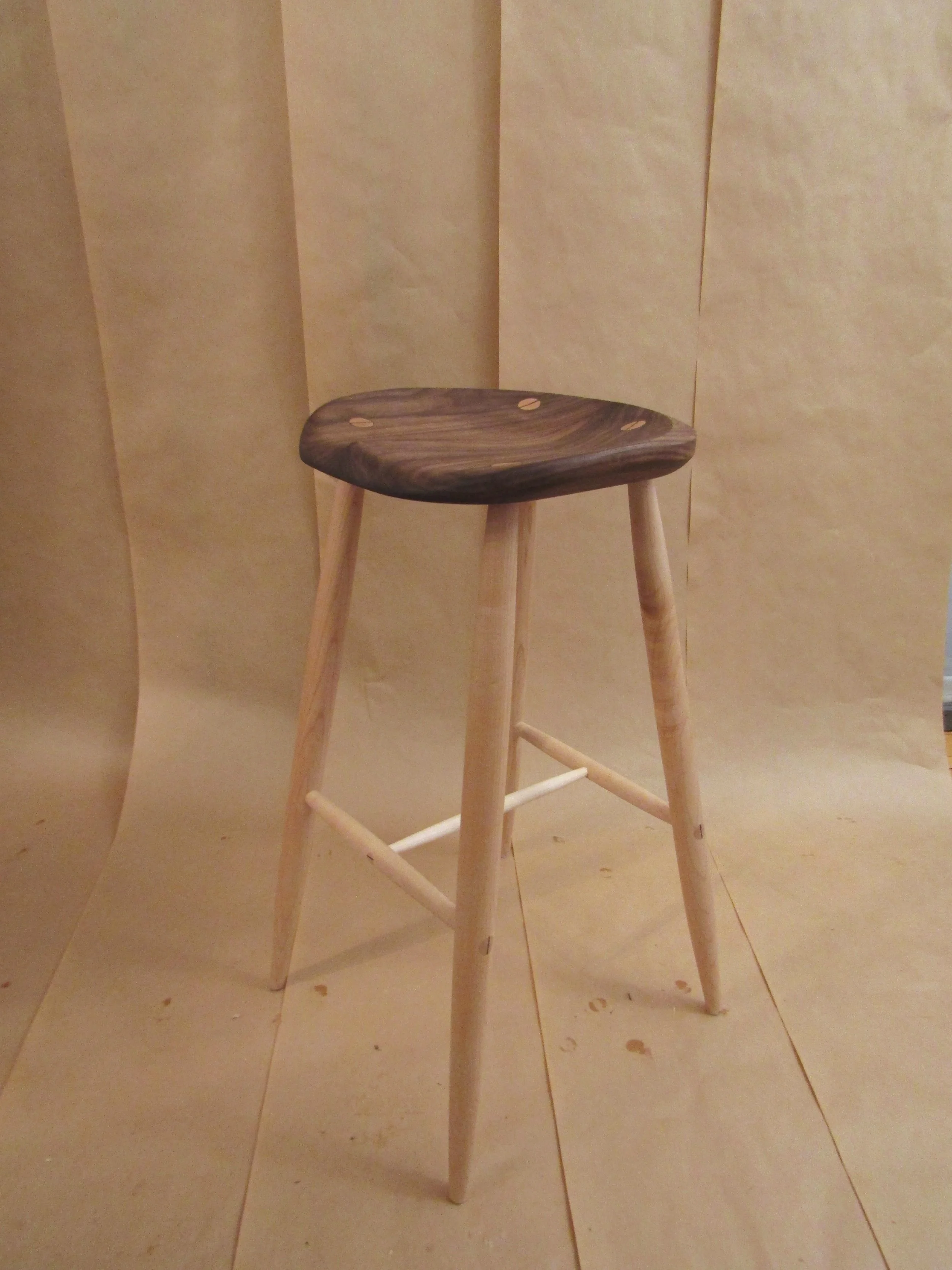 Sometimes simple is what a space needs. This simple three legged stool is just right for any bar or breakfast nook. The simplicity of the shape allows the beauty of the wood to take front stage in this piece. Pictured here with a cherry seat and walnut legs but feel free to experiment to fit your home. Price start at $400.